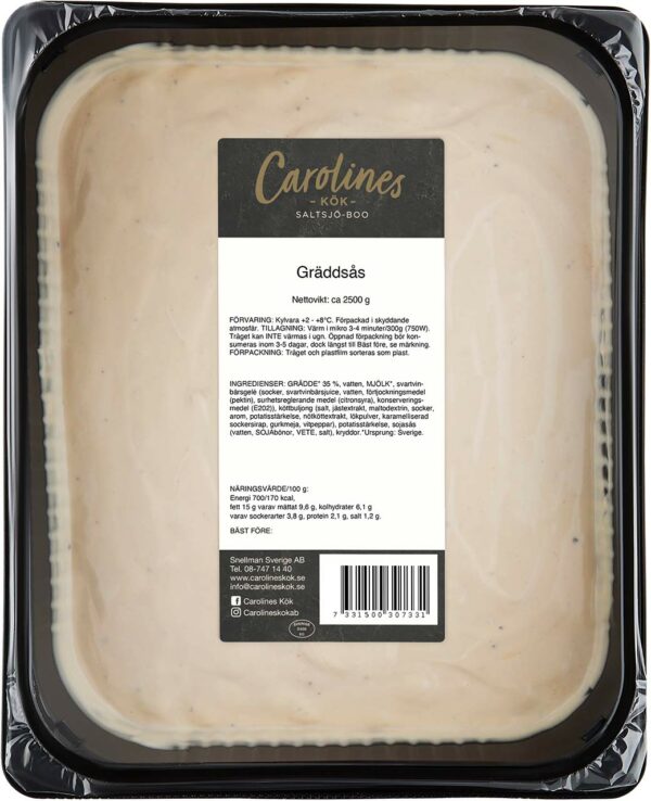 VÅR GRÄDDSÅS är en krämig äkta gräddsås gjord på gjord på svensk grädde & mjölk och smaksatt med svartvinbärsgelé, precis som det ska vara.